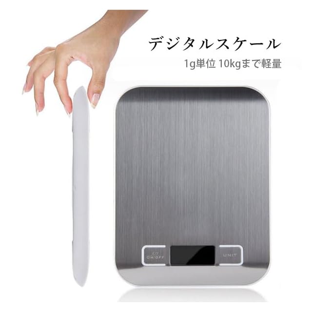 デジタルスケール キッチンスケール クッキングスケール 秤 電子秤 1g 単位 10kg まで計量 切替 デジタル はかり 料理 軽量 スリム
