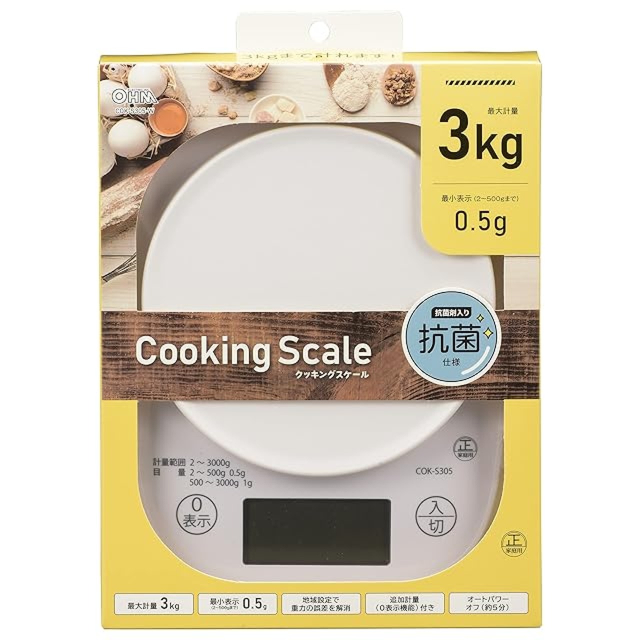 商品名:オーム電機 クッキングスケール 3kg 抗菌仕様 キッチンスケール 料理用はかり 量り 計り デジタル 計量 COK-S305-W 07-8918 OHM ホワイト