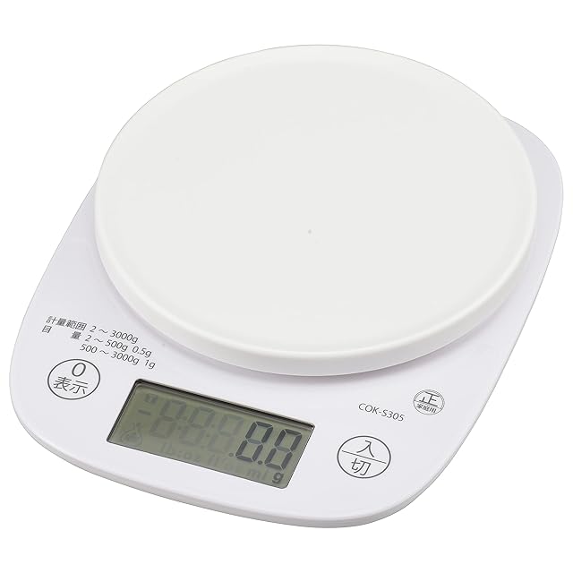 【 特 長 】● 最大計量3kg、抗菌仕様のクッキングスケール● 2g~500gまで0.5g単位、500g~3000gまで1g単位で計れます● 見やすい大画面表示● オーバーロード表示、低電力表示