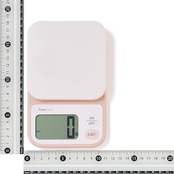 表示が大きく見やすい、バイカラーでキュートなデジタルキッチンスケールです。<br/>1g単位で計量でき、最大2kgまで計量可能です。<br/>収納にも困らない壁掛け用フック穴つき。<br/>地域設定ができ、高精度での計量が可能です。<br/>※日本の各地域の重量値は若干差があります。高精度のはかりはこの影響により誤差が発生する可能性があるため、その誤差を修正する機能となります。<br/>【注意事項】 使用電池:単4形乾電池×2個<br/> 取扱説明書:有<br/> 期間:1年<br/> オートパワーオフ:約4分<br/> 防水・防滴・防塵構造ではないため、湿気の多い場所や水のかかる場所で保管・使用しないでください。<br/> はかりは精密機器です。落下させたり、強い衝撃を与えないでください。<br/> 保管する際は、軽量皿の上に物をのせたり、計量皿に負担をかけないでください。<br/> その他、添付の取扱説明書をよく読み、正しくお使いください。<br/> 原産国:中国