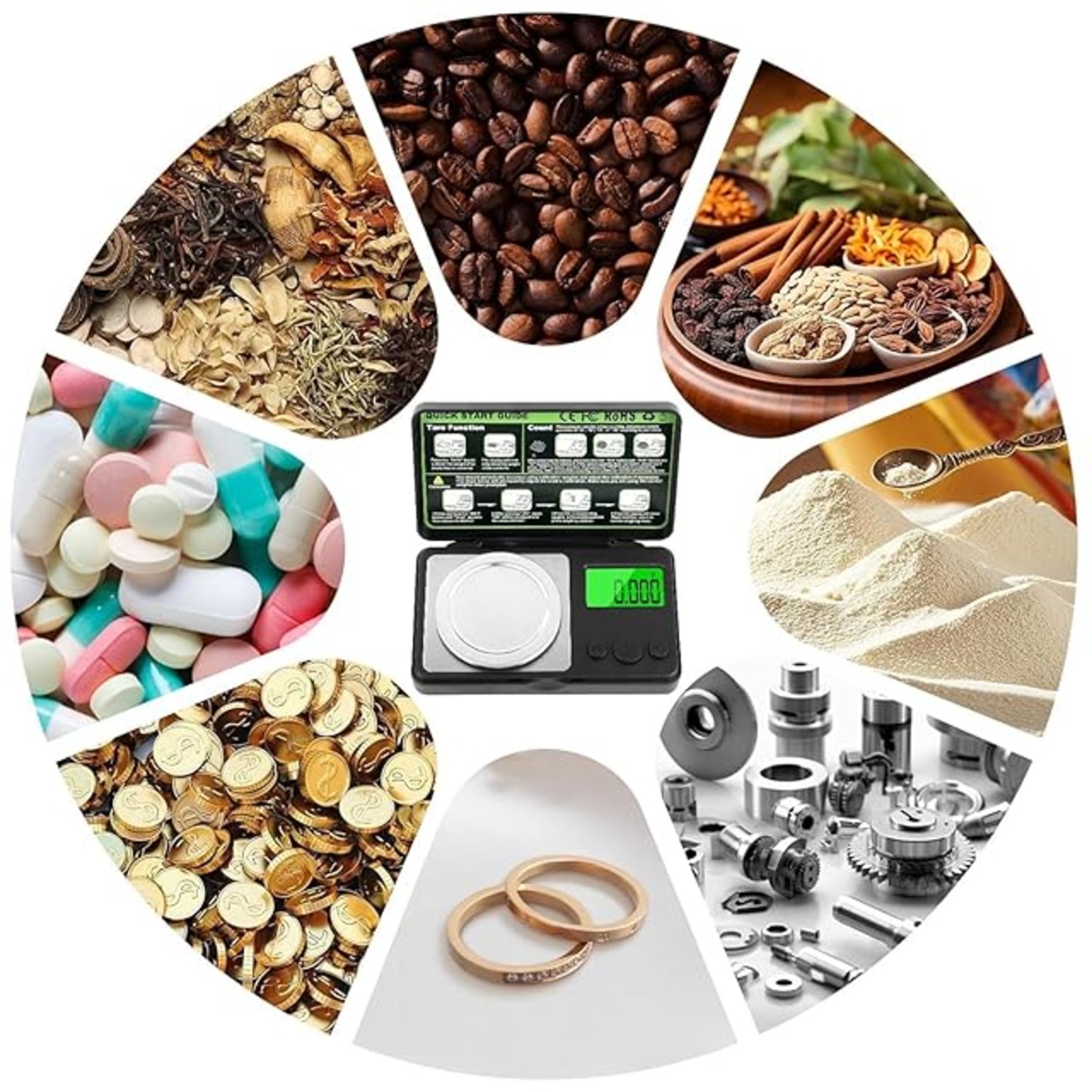 様々なシチュエーションでお使い頂いてます: 郵便物の計量、調理用、茶葉、薬、粉末調味料、水、ジュエリー、ペットフード、粉ミルクなどにご使用いただけます。