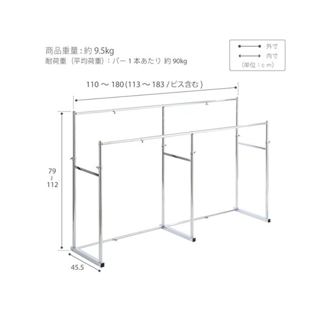 サイズ(cm):幅111~181(114~184/固定金具含む)x奥行45.5x高さ79~112cm・約9kg