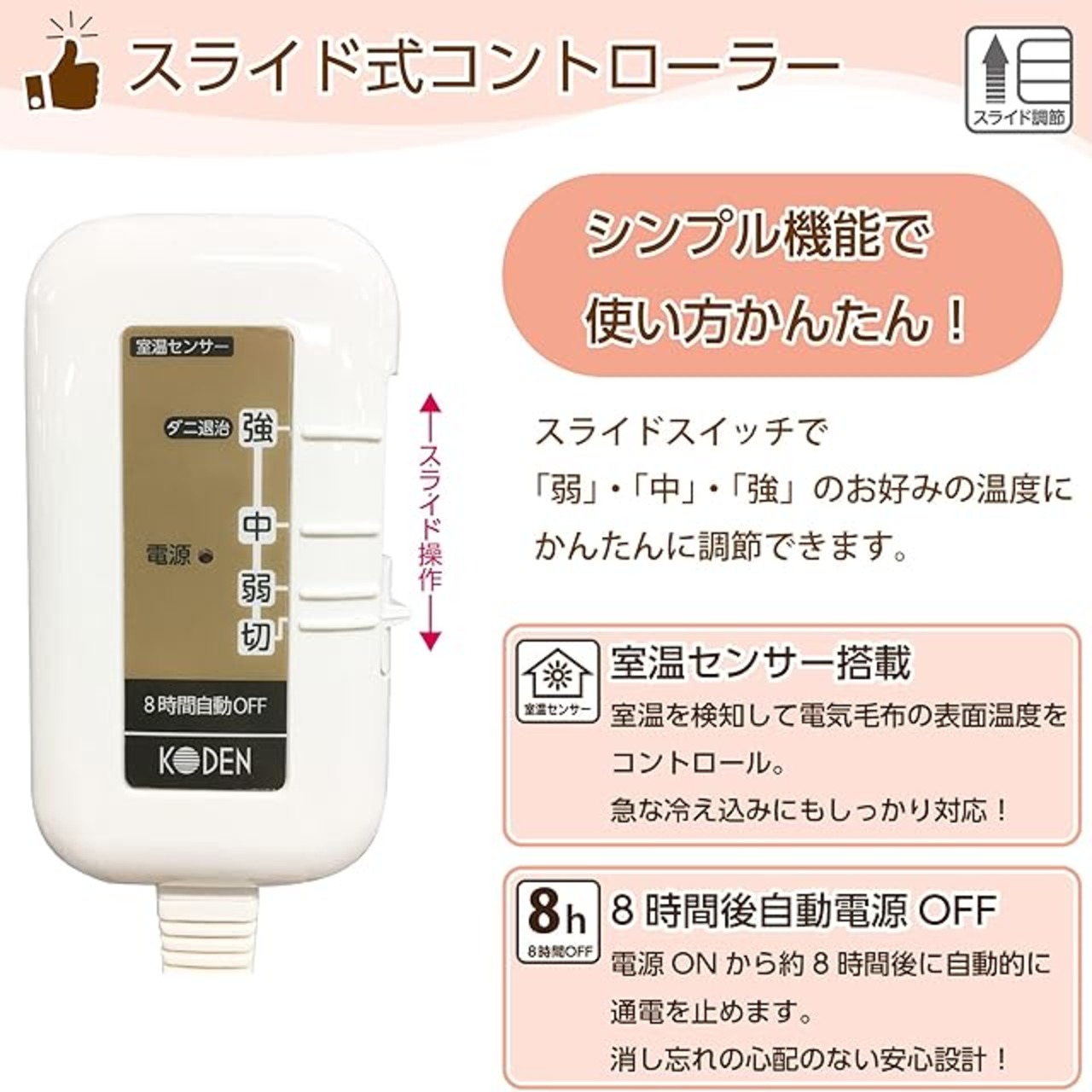 【本体丸洗いOK】コントローラーを電気毛布本体から取り外し、手洗いもしくは洗濯ネットに入れることで、洗濯機で丸洗いすることができます。ダニ退治をした後に洗うことで、更に清潔な状態でご使用いただけます(詳しくは取扱説明書をご覧ください)。
