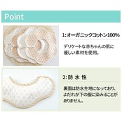 【オーガニックコットン100%】素材はオーガニックコットン100%の6重ガーゼ生地。6枚の層で程よい厚みがあり、柔らかくて毛玉になりにくい素材です。天然素材なので、アレルギーがある赤ちゃんの肌もしっかりと守ってくれます。表面はサラサラ気持ちいい使用感。 厚手で吸収力があり、通気性も優れているので赤ちゃんのよだれをすばやく吸収、発散。