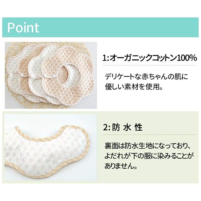 【超防水仕様】裏面の外面が防水生地になっており、よだれが下の服に染みるのを防ぎます。よだれたっぷりの赤ちゃんも、首元の肌荒れを抑え、すべすべのお肌✨を守ります。