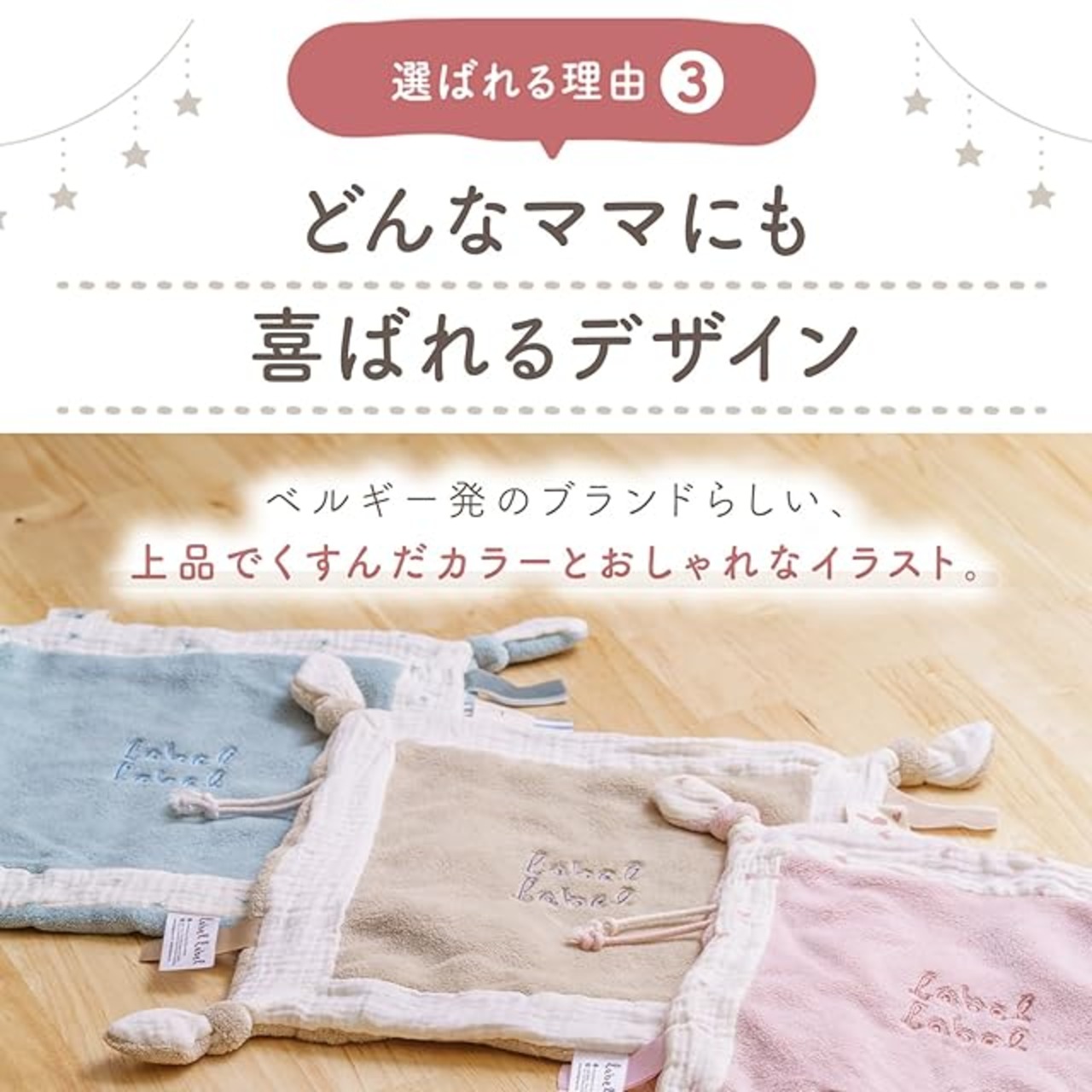 【ぐずり対策&寝かしつけの心強い味方】 なかなか寝付けない時や、ぐずってしまった時にそっと渡してあげてください。カシャカシャ音やタグの感触に夢中になっているうちに、いつの間にかご機嫌に。お気に入りの「安心タオル」として、赤ちゃんの心の拠り所になります。