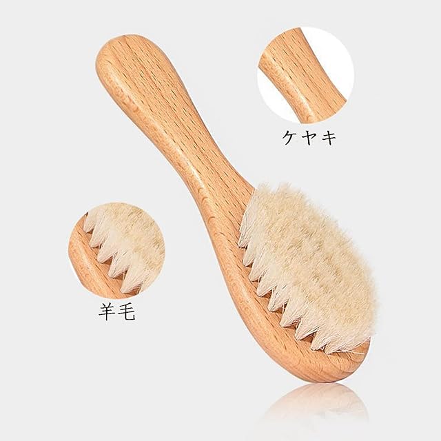 【製品材質】:天然木材と柔らかい動物の毛で丁寧に作成された本製品は、赤ちゃんのデリケートな頭皮と髪に最適です。優しい触感で髪を梳きながら、頭皮の健康をサポートします。