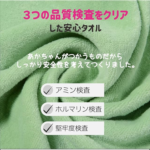 【安心・安全】「ホルマリン検査」「アゾ染料検査」「堅牢度検査」全て日本規格合格済。お子様に安心してご使用いただけます。