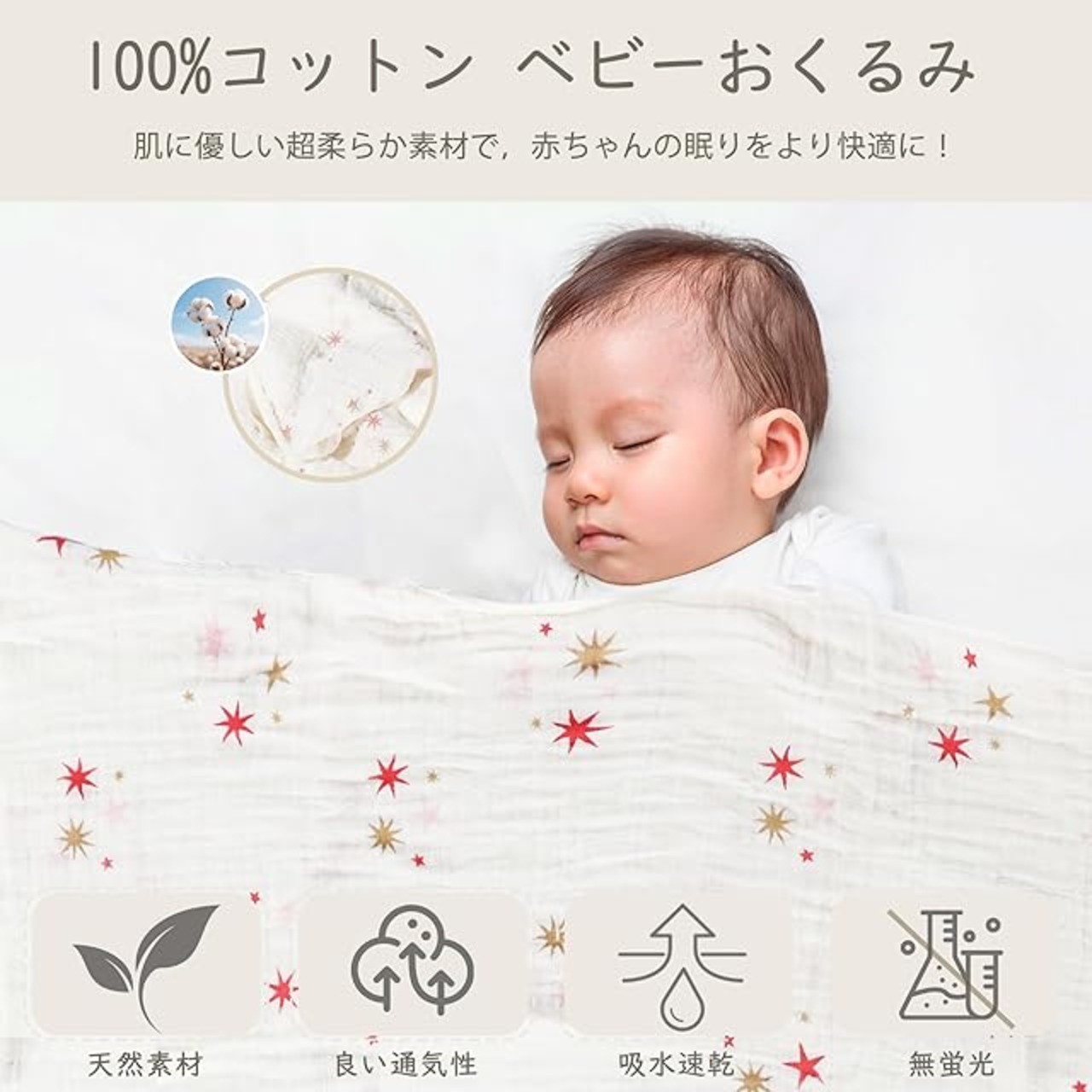 【100%コットン・おくるみ・よだれかけ】当社の高品質なおくるみとベビーよだれかけは100%超柔らかいコットンで作られており、通気性があり、無蛍光の天然素材なので、新生児のデリケートな肌にも優しく接します。洗濯が簡単(温水洗濯、低温乾燥)で、洗うたびにさらに柔らかくなり、日常の抱っこ、おくるみ、またはうつぶせ遊びに最適!星型モチーフの可愛いベビーソックスは滑り止め付きで、赤ちゃんの快適な着用と安全を両立させます。