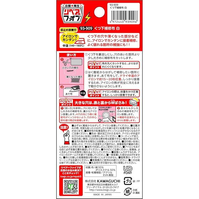 KAWAGUCHI(カワグチ) 手芸用品 くつ下 補修布 白 93-909
