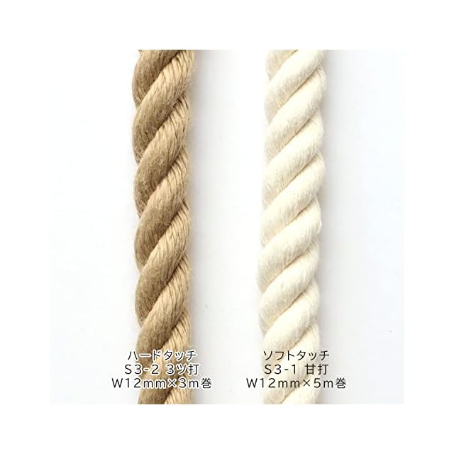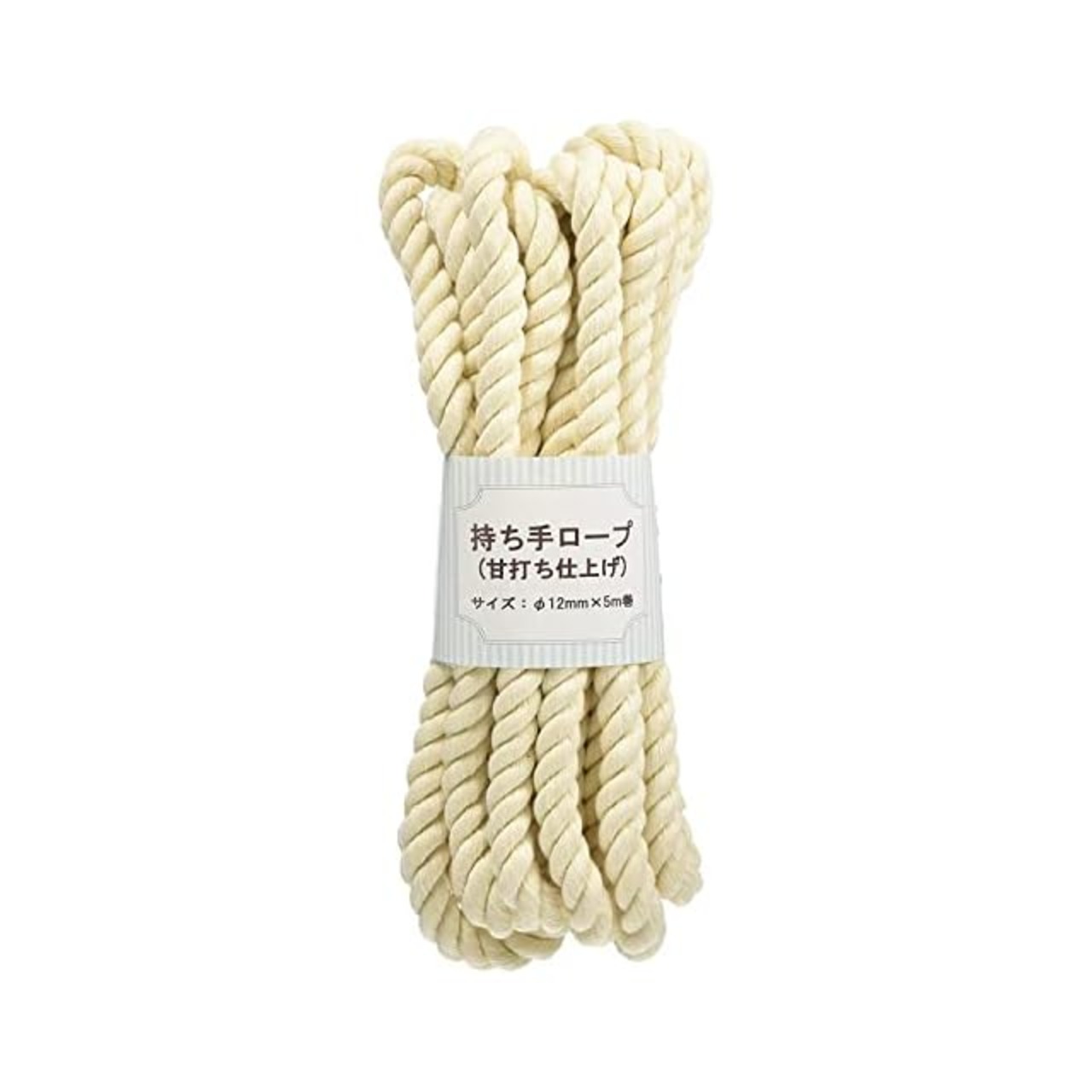 日本紐釦貿易(Nippon Chuko) 持ち手ロープ 甘打ち仕上げ 生成 12mm×5m巻 手芸 綿 多用途ロープ アウトドア ペット用 S3-1