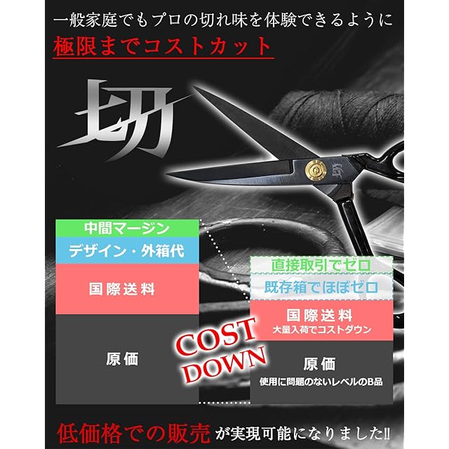 少しでも気軽にプロ仕様の裁ちばさみを使って頂きたいので、可能な限りコストカットいたしました。見栄えは少し劣りますが機能面に全く問題ございません。8寸、9寸、11寸、10寸(左利き用)と幅広くご用意させて頂きましたので、是非お試しください。