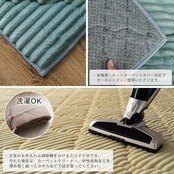 【備考】 丸洗い可能(洗濯ネットを使用し、手洗いコースをお選び下さい。洗濯機の取り扱い説明書をご確認の上、適した洗濯コースをお選びください。)洗濯後はすぐに形を整え日陰で干してください。乾燥機は使用できません。大きめサイズの洗濯に関しては、コインランドリー等をご使用ください。(190×190cm以上推奨)ご自宅の洗濯機容量が異なるため、お客様にてご確認ください。 / ※こちらの画像は 190x240cm を使用しております。 / 床暖房の上敷き、ホットカーペットカバー対応 。 / 圧縮梱包での配送となります。(商品がお手元に届きましたら、なるべく早く開封していただきますようお願いいたします。圧縮梱包のまま長時間放置すると形状を復元するのに時間がかかる場合がございます。) ●洗濯機の目安容量は、1~1.5帖用以下の場合12kg以上、2帖用以上の場合16kg以上の洗濯機をご使用ください。※3帖用は20kg以上または手洗いです。ラグの大きさによっては、洗濯機で洗えない場合もございますので、収まりが悪い場合はコインランドリーや手洗い等ゆとりのある洗濯をお願い致します。
