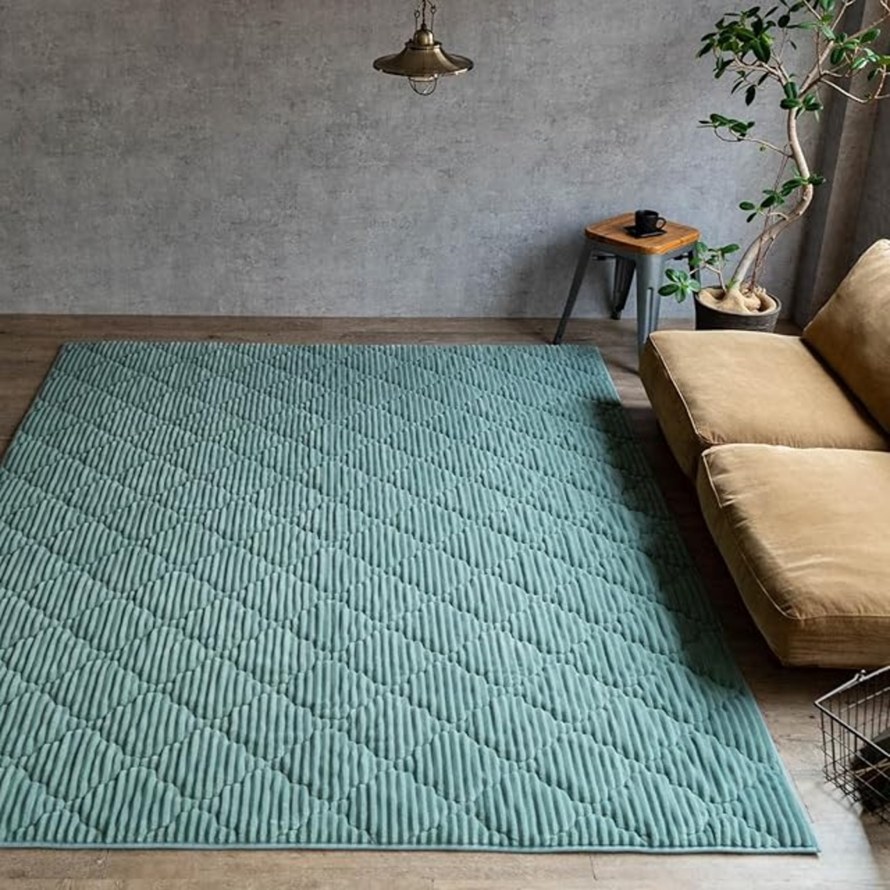 商品名:サヤンサヤン ヌア フランネル キルト くすみ KUSUMI 抗菌 防臭 洗える 北欧 ラグ マット 190x190 2畳 セージ グリーン