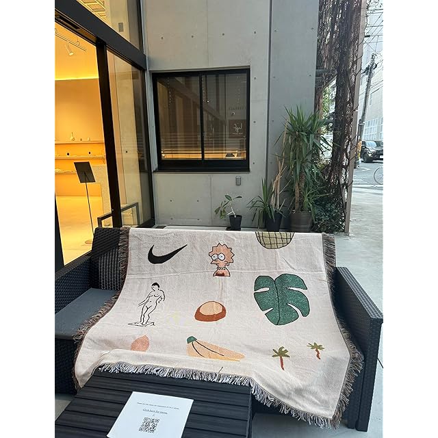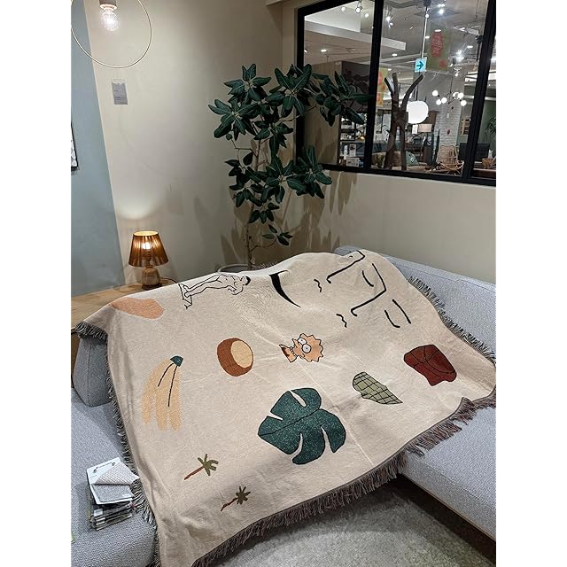 Peel Forest 面白い 柄 おしゃれ ブランケット シンプソンズ ラグ 北欧,ひざ掛け,ベージュ (130X160cm)
