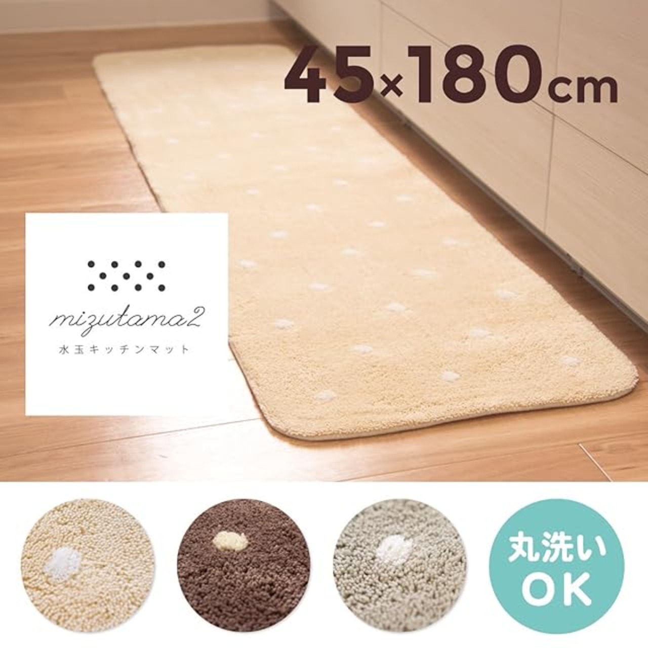 商品名:オカ 水玉2 キッチンマット 約45×180cm グレー