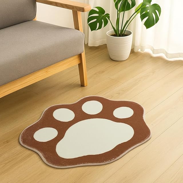 ISEFUJI 肉球マット ネコ足デザイン ラグ ふわもこ 洗える 40×60cm 滑り止め付 (ブラウン)