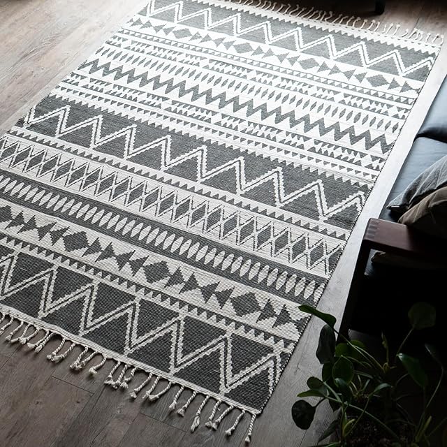 サヤンサヤン ネイティブ柄 幾何学 たためる ラグ 140x200 cm 1.5畳 ブラック 手織り
