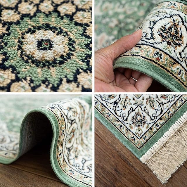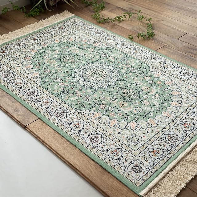 商品名:サヤンサヤン ペルシャ柄 玄関マット 室内 ロイヤルパレス14180 95×140 グリーン ベルギー