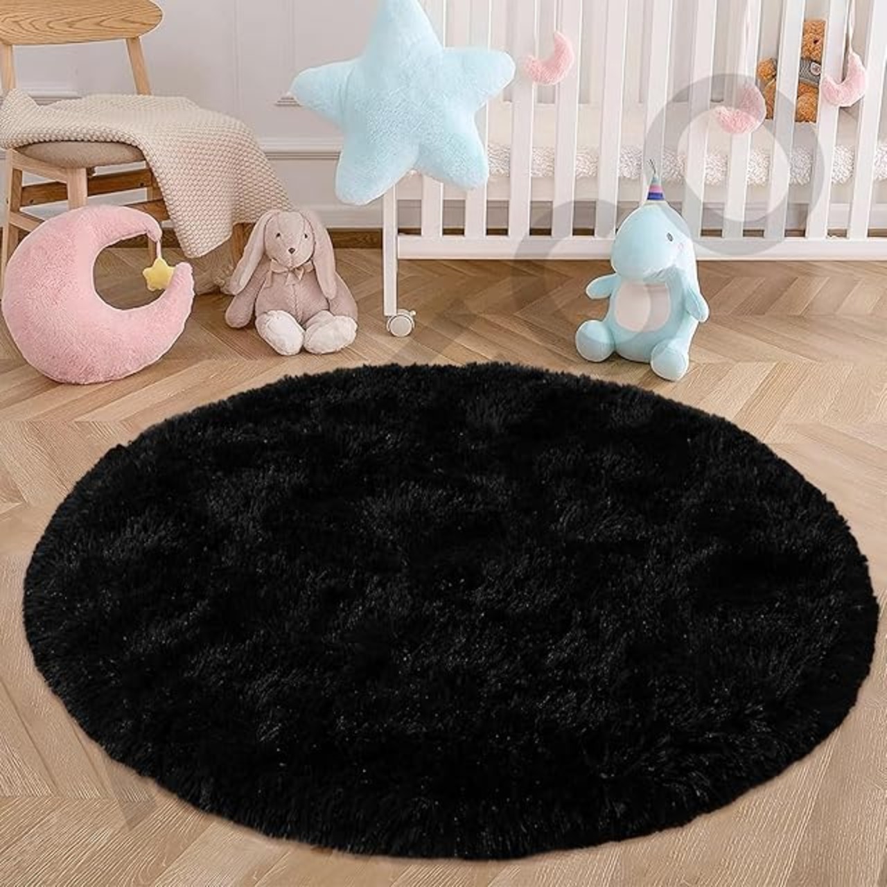 AIMECOラグ 円形 ラグマット 小さめ ふわふわ 北欧おしゃれ 抗菌除ダニ carpet 子供部屋 子寮 リビング装飾 100cm ブラック