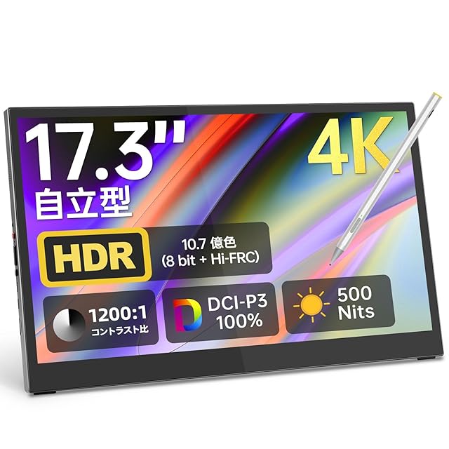 商品名:Intehill モバイルモニター 17.3インチ 4K x 100% P3広色域 マルチタッチ対応の 4K タッチパネル タッチペン対応 (4096 圧感) 500 Nits高輝度 モバイルモニター 自立 CNC アルミデザイン モバイルディスプレイVESA/HDRモード/FreeSync/デュアル USB-C と HDMI /(U17ZT)