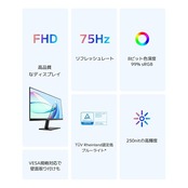 【75Hzの高リフレッシュレートにより、遅延のない高効率をオフィスで実現】毎秒75回のリフレッシュレートにより、ダイナミックな画像を遅延なくスムーズに表示し、画面やマウスの遅延をなくすことで、よりスムーズで効率的なオフィス体験を提供します。
