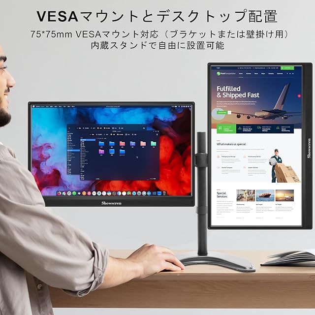 【超薄で携帯性の高い】このタッチパネル モニターは、軽量なデザインを採用しています。重量はわずか1.3ポンドで、サイズは14.2 * 8.9インチで、最も薄い部分はわずか0.39インチです。バックパックに簡単に収納でき、重さを感じることはありません。他のディスプレイと比較して、このディスプレイは新しい内蔵スタンド設計を採用しており、0~90度の調整が可能です。ディスプレイの重量を軽減するだけでなく、デスクスペースも節約できます。また、VESA 75*75mm取り付けに対応しており、壁掛け/デスクトップ掛け/アームやブラケット取り付けなどが可能です。