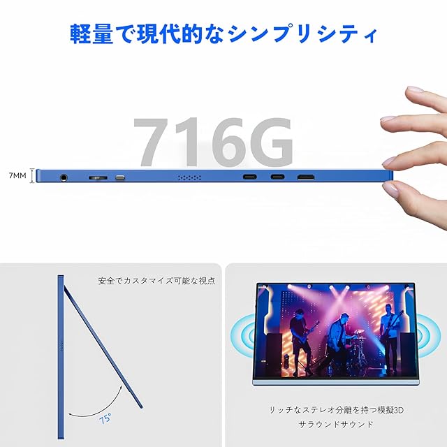 商品名:モバイルモニター16 インチ 1920*1200P IPS ポータブルモニターUSB-C搭載Freesync HDMIゲーミングモニター 動脚付き4色選択可能0.3超薄型ゲーム仕事使用に最適 (ブルー)