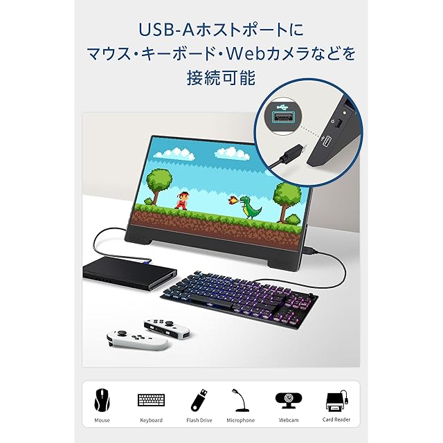 USB-Aホストポートを搭載し、マウスやキーボードを接続してモニタをUSBハブのように使用することも可能