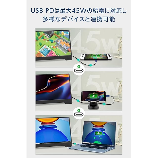 USB PD(パワーデリバリー)に対応する15インチサイズ フルHD解像度(1,920*1,080)のモバイルモニター