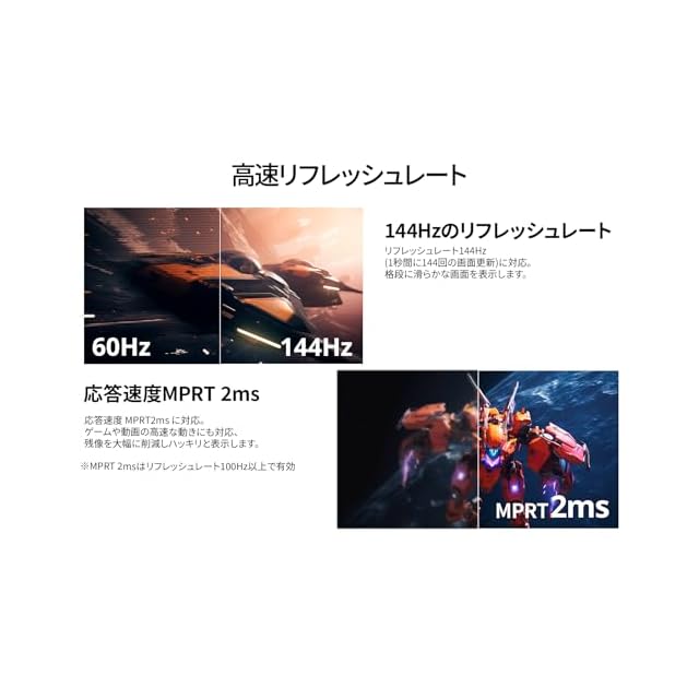 144Hzの高速リフレッシュレートに対応、FPSなどの動きの早いゲームも場所を選ばずにプレイが可能です。