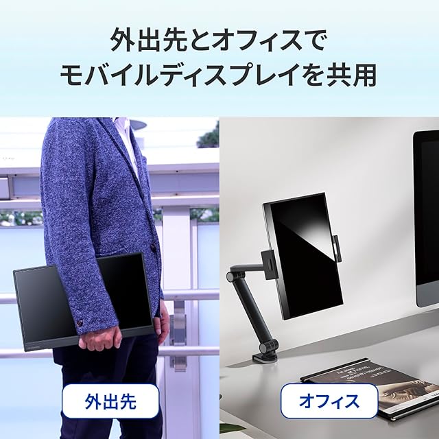 モバイルディスプレイを設置型ディスプレイのように使用でき、外出先とオフィス内のディスプレイを共用できます。