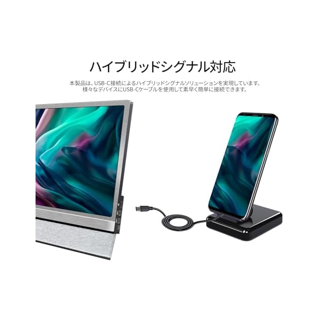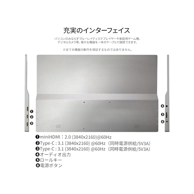 入力端子としてハイブリッド対応(モニターへの電源と映像を1本で送信)のUSB Type-Cを2つとminiHDMIを1つ装備します。*miniHDMI使用時にはUSB Type-C端子から電源供給が必要になります。