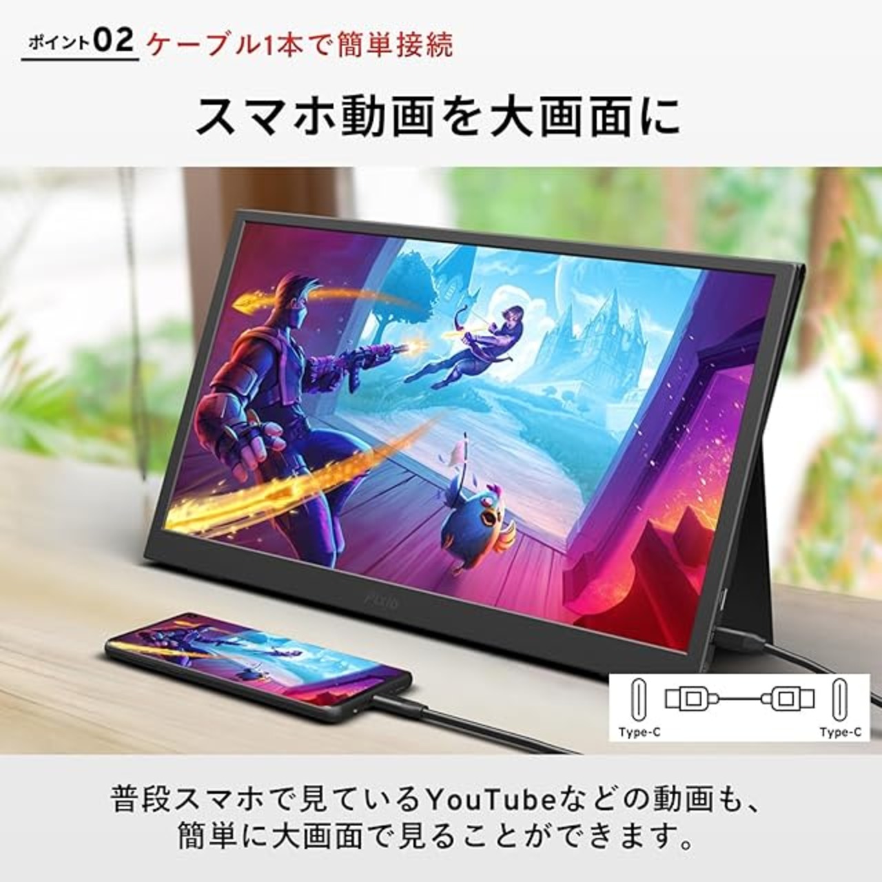 [特長] PX160WAVEは、発色の良いIPSパネルを備えた15.6インチモバイルカラーモニターです。USB-C接続に対応しており、映像出力と電源供給を1本のケーブルで行うことができます。軽量で持ち運びもできるので、セカンドモニターやサブディスプレイに最適です。取り出してすぐに使える便利なスタンド付き。