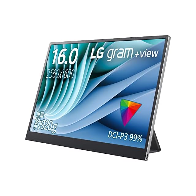 LG gram +view モバイルモニター/16型、WQXGA(2560×1600)、IPS/16:10/IPSパネル/ノングレア/USB Type-C×2(PD45Wまで)/16MR70