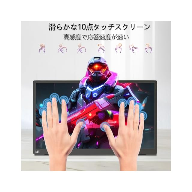 【スムーズな10点タッチスクリーン】10点タッチスクリーンはONCELLタッチ構造を採用し、高感度で応答時間が短い。ソフトウェアドライバーは不要で、Type-Cケーブルで接続するだけで、簡単にタッチ機能を実現できます。(注:mini HDMIケーブルとACアダプターを接続しただけではタッチパネルは使えません。mini HDMI自体、映像及び音声を出力する機能しかないため、タッチパネルを利用しようとなると、USB接続が絶対となります。) 最大10点までのマルチタッチに対応し、液晶画面を指でタッチするだけで、画面の拡大、縮小、クリック、ドラッグなどの直感的な操作が可能です。このポータブルモニターを使用すれば、キーボードやマウスを接続する手間が省け、作業スペースを大幅に節約でき、効率的に作業を行うことができます。(注意:アップルのデバイスはワンタッチのみ、アップル以外のデバイスはマルチタッチに対応できます)