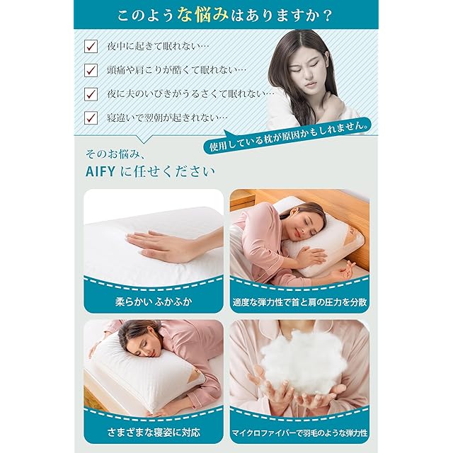 商品名:AIFY 枕 ホテル仕様 低中タイプ 高さ 16cm 仰向け うつぶせ寝 柔らかい枕 寝心地良い枕 安眠 まくら 丸洗い可能 立体構造 チェック柄 43×63cm ホワイト