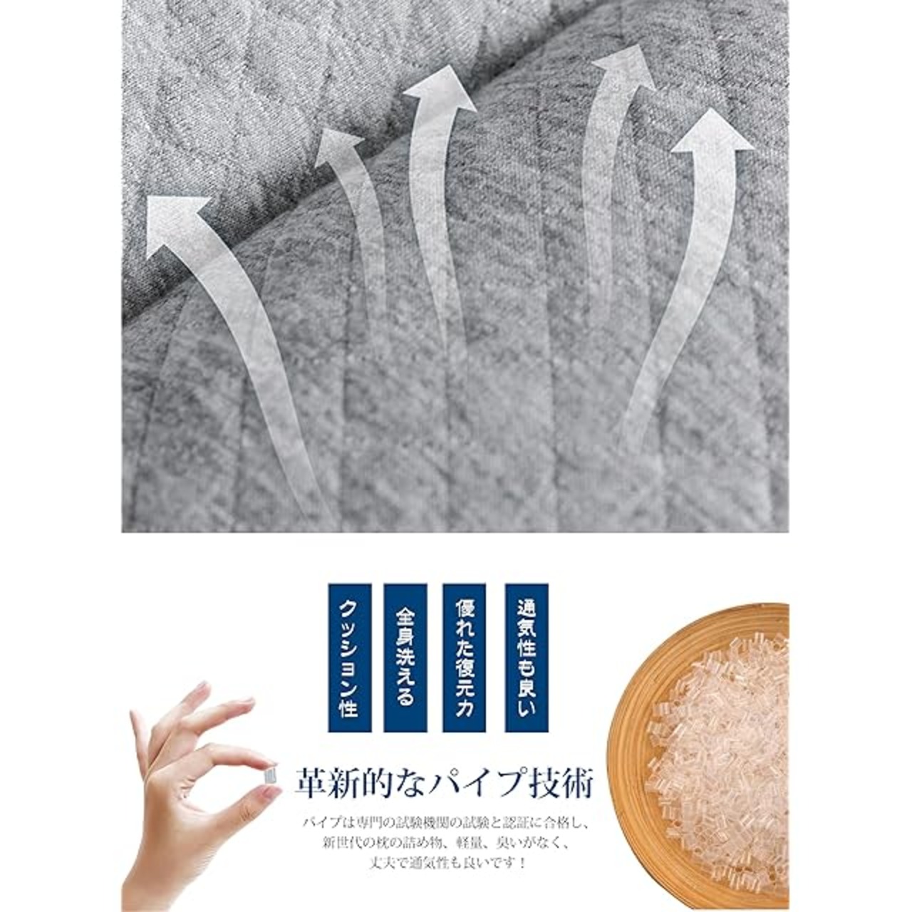 【洗濯ネット付き、丸洗いができ】枕、補充パイプ、洗濯袋、梱包箱が付属しております。人は寝ている間にコップ1杯分の汗をかくと言われています。特に髪の毛がある頭は温度が高く、蒸れやすくなります。枕本体も洗濯ネットに入れて洗濯機で丸洗いてきるので、いつも清潔にお使いいただけます。洗濯後は風通しの良い場所で陰干しをして<ださい。