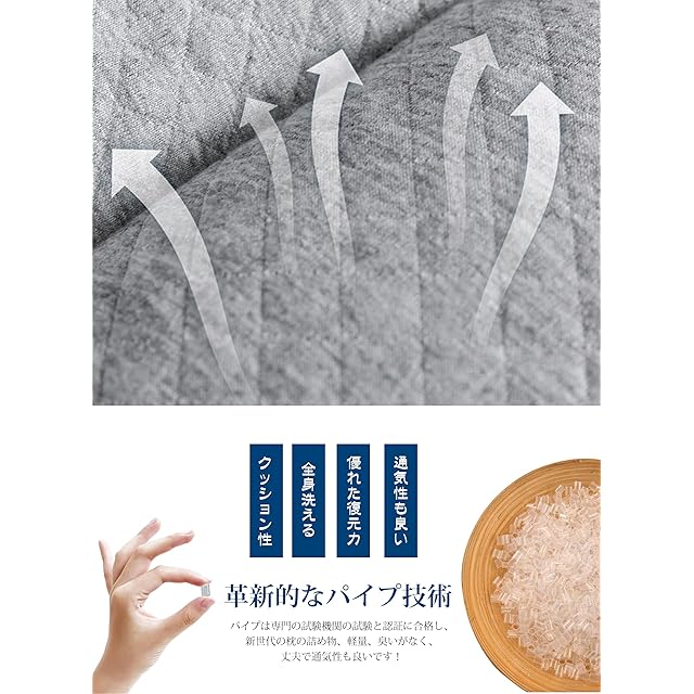 【通気性が高くムレにくいパイプ枕】革新的なパイプ技術と立体構造を採用し、頭部·首元をしっかりサポートしてくれます。通気性・安定性のよいパイプ素材入り、ほどよいクッション性はもちろん、抜群の通気性を有します。睡眠中、首、 頭部に熱がこもらず、睡眠時の脳温が下がりやすくなり、蒸れず夏にサラサラで快適にお休みいただけます。頭を乗せた瞬間、“ふわっ”と軽くなる心地良さに包まれます。