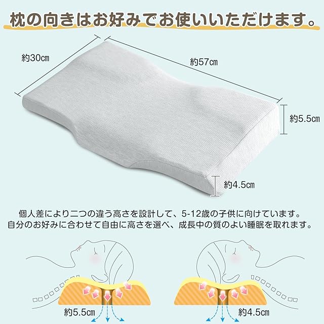 商品名:MyeFoam 子供枕 低反発 まくら 頚椎カーブ設計 仰向き 横向き プレゼント 洗える 寝具 子供部屋 男女兼用 寸法57*30cm