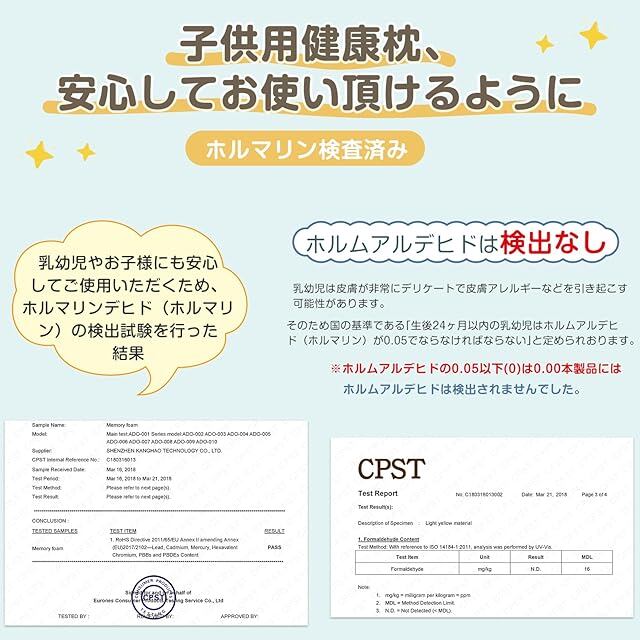 【 厳しいホルムアルデヒト品質試験をクリア 】ホルムアルデヒトの品質基準検査をより厳しい子供用製品の試験基準で検査を実施し見事試験に合格しました。お子様が安心安全にお使いいただけます。