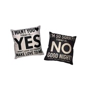 あまりにもコテコテのラブピロー YES NO 枕ですと贈られた側は使用し難いですが、本商品はインテリアとしてもお洒落な上にしっかりと使用できます。本製品は表裏デザインで1個入りです。