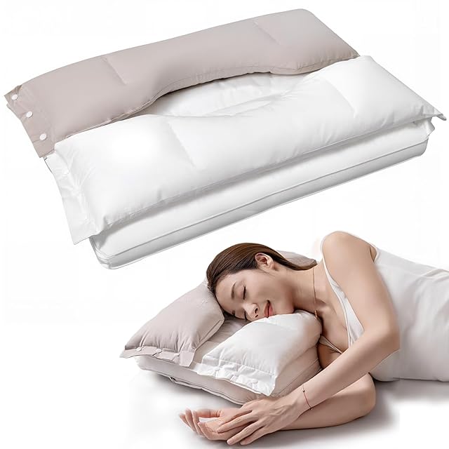 YOIIYO 枕 首が痛くならない 人気 まくら【ボタンで高さを調節可能】安眠枕 快眠 肩こり 二層構造 取り外し可能 だき枕 横向き•仰向き•うつ伏せ寝対応 100%コットン 丸洗い可能 やわらかい 引っ越し祝い 誕生日プレゼント ギフト