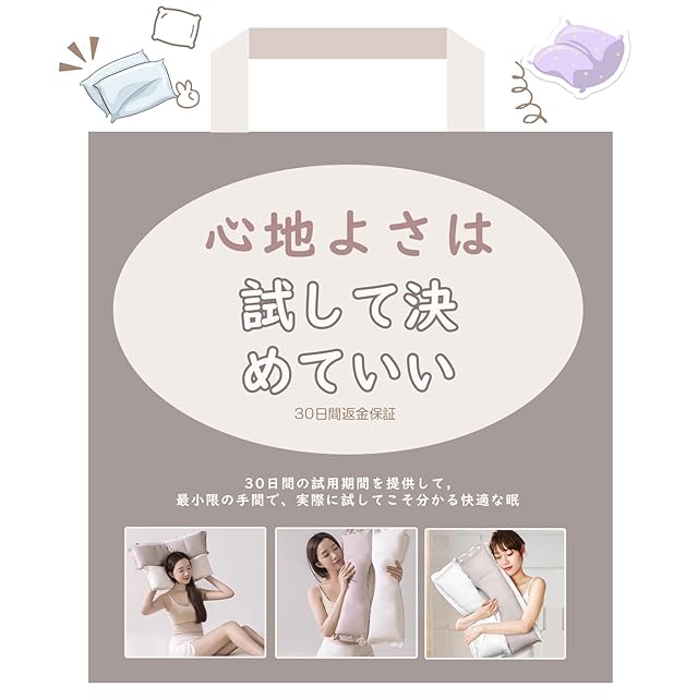 【最小限の手間で、実際に試してこそ分かる快適な眠り】まくらの快適さは、実際に使ってみることで最も実感できます。私たちは、お客様の睡眠習慣に合わせて、30日間の試用期間を提供しています。この期間中に枕の高さや使用感を自由に調整し、最適な使い方を見つけていただけます。万が一、試用期間内にご満足いただけない場合は、返品も可能です。私たちの約束は、細部にまでこだわり抜いたまくらの品質に自信があるからこそ、提供できるものです。