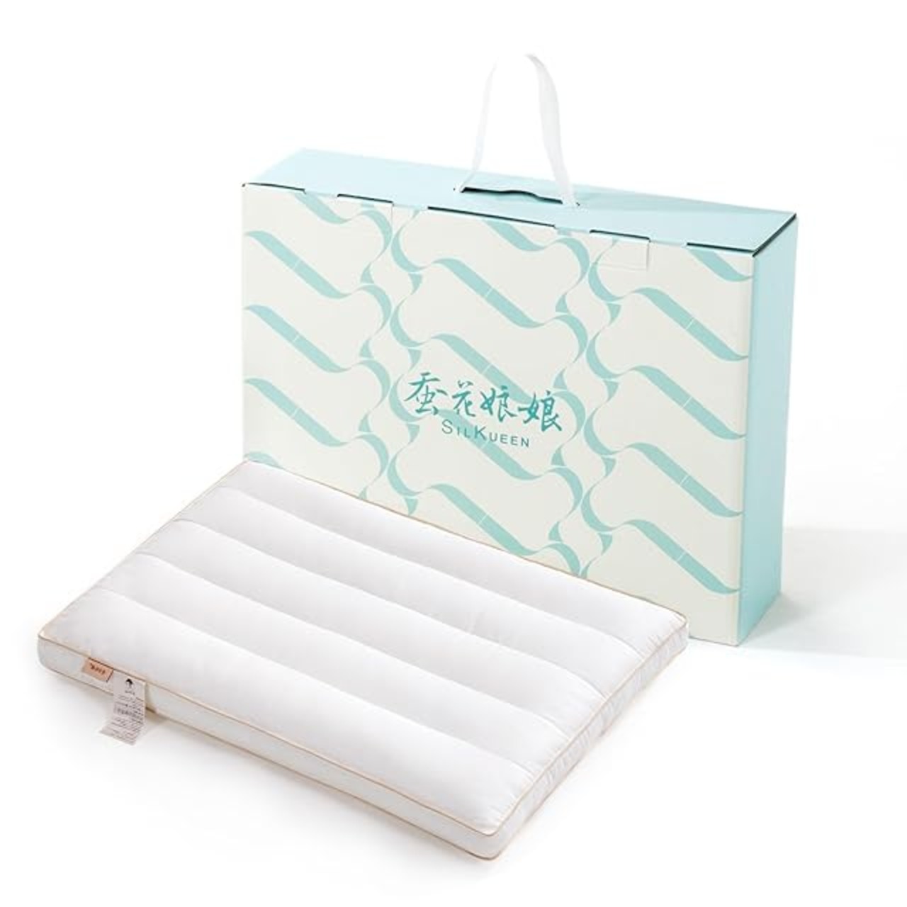 蚕花娘娘 シルクプレンド枕 低め 首や肩の負担を減らす 低反発 安眠枕 横向き寝 仰向け寝 洗える 通気性 まくら プレゼント(ホワイト) (63*43*8cm)