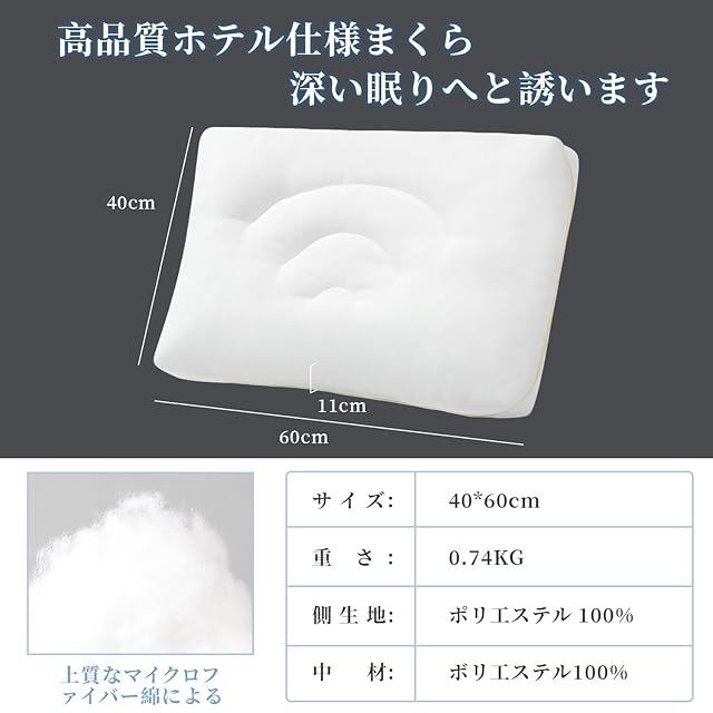 【ホテル枕の極上寝心地を自宅で】まるで高級ホテルのような快適さを、自宅で毎晩楽しめる枕です。上質ポリエステルを使用したこの枕は、頭から首までを優しく包み込み、身体に負担をかけない絶妙な設計。ふんわり感で高級ホテルのような贅沢な寝心地をご体感いただけるプレミアムな枕です。