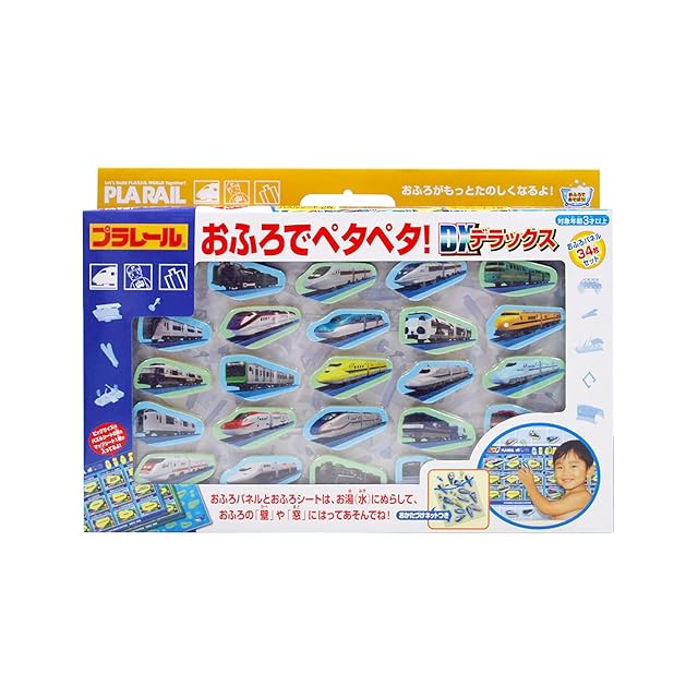 大人気のプラレールのおふろ遊びセットです。 <br><br> プラレールの代表的な車両をセットにしたおふろあそびセットです。 裏面にお湯(水)をつけることでおふろの壁や窓にくっつきます。 <br><br> 専用のビッグサイズのマップシートとパズル遊びシートで遊ぶことができます。 付属のおかたづけネットで、清潔に収納。 <br><br> <セット内容> <br> ・おふろパネル 34個<br> ・マップシート 1枚(幅:46cm × 高さ:31.5cm) <br> ・パズルシート 2枚(幅:59cm × 高さ:42cm) <br> ・おかたづけネット 1個<br> <br>
