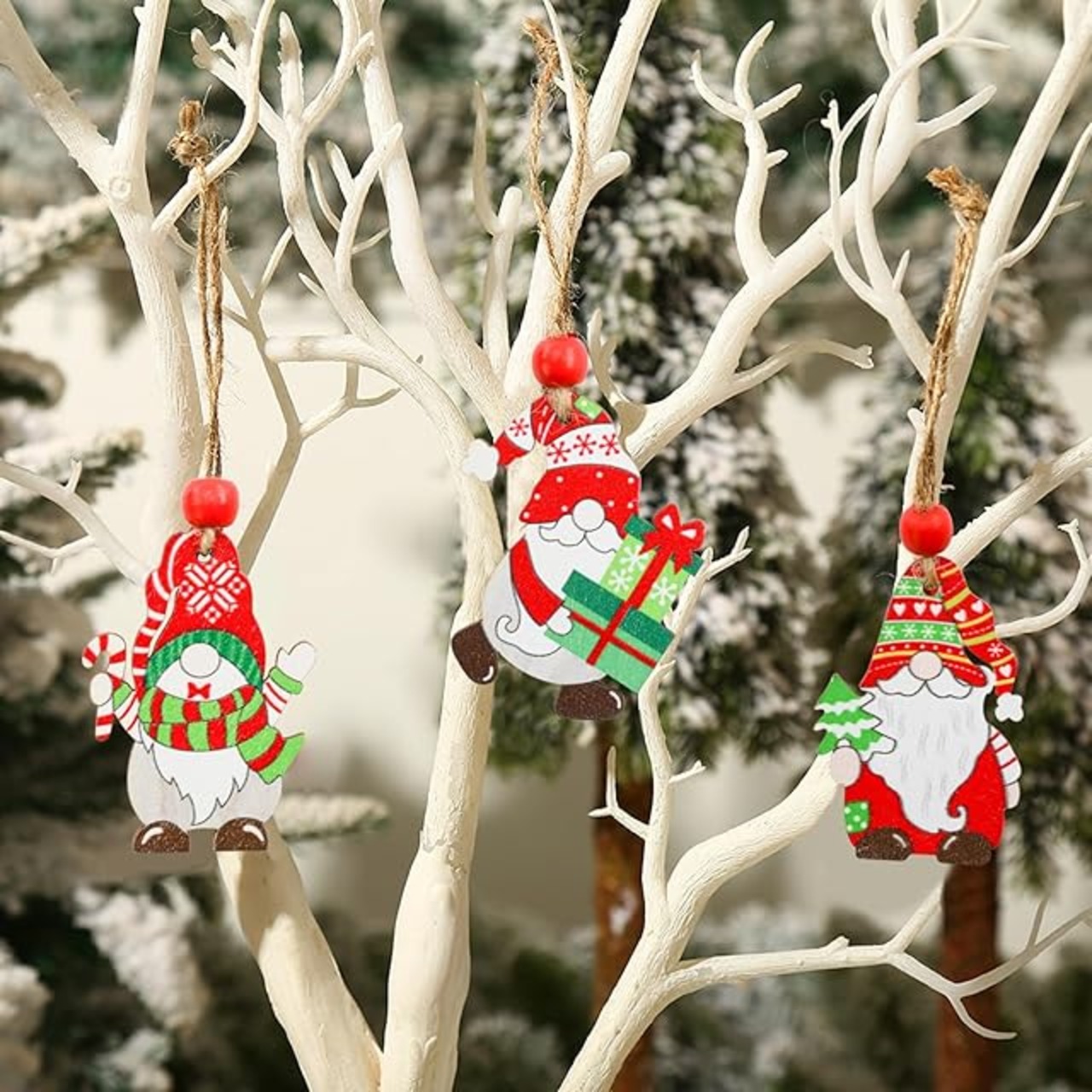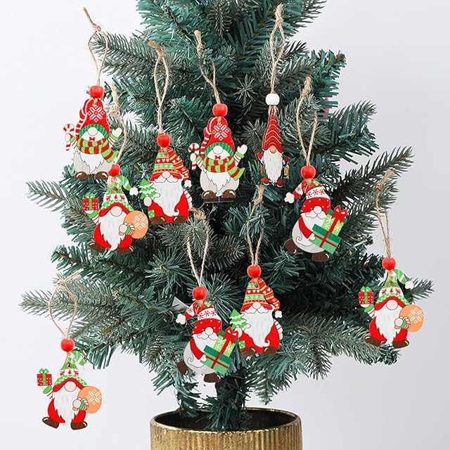 Enkrio クリスマス 飾り サンタクローズ 木製 12枚セット クリスマスツリー オーナメント 人形 妖精 ツリー飾り ドワーフ 吊り下げ装飾 玄関 部屋 かわいい おしゃれ 壁掛け インテリア パーティー装飾 プレゼント