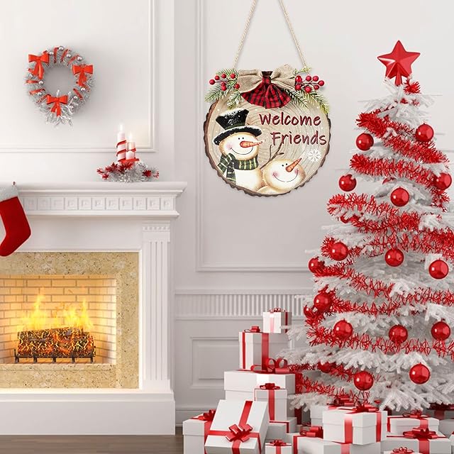 このクリスマスリースは、直径約30cm、厚さ約2cmの円形で、木素材を使用しています。表面は滑らかで、クリアな絵柄の字母と雪だるまが描かれています。リースの裏側にはロープが固定されており、飾りたいところに掛けるだけで簡単に取り付けることができます。玄関、壁、部屋のどこでも飾ることができ、バーやショップのクリスマスデコレーションとしても適しています。クリスマスの雰囲気をたっぷり楽しめるデザインで、友達や家族へのプレゼントとしてもお勧めです。