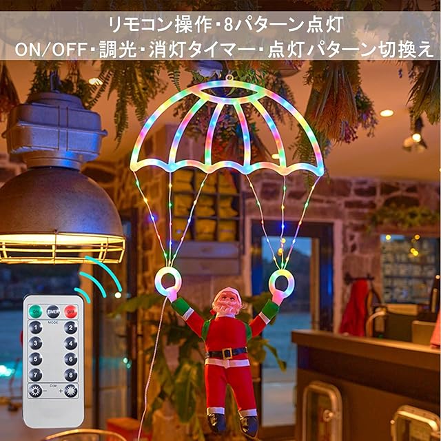 【商品仕様】サイズ:71cmx40cm【セット内容】パラシュートライト *1、サンタさん*1、リモコン*1。